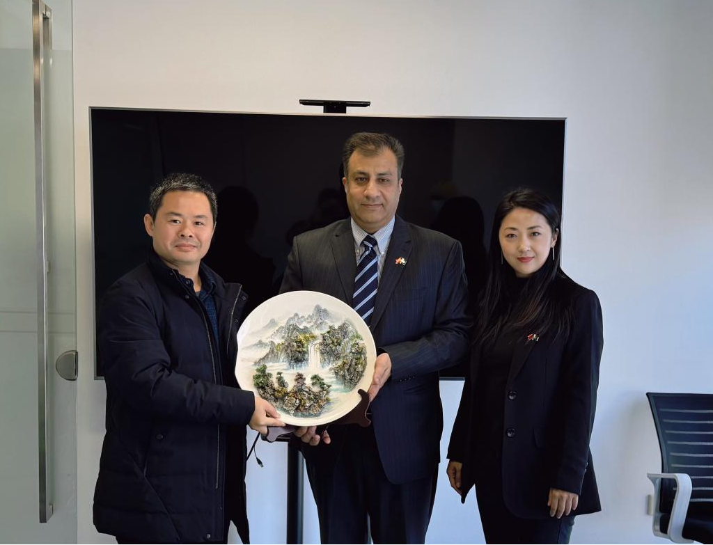 活动期间,学校与开伯尔·普赫图赫瓦省(KPK)工业、商业和技术教育部秘书阿米尔·阿法克先生进行接洽会谈,就双方职业教育合作达成共识,并向其赠送学校非遗创新产品“英石碟景”。