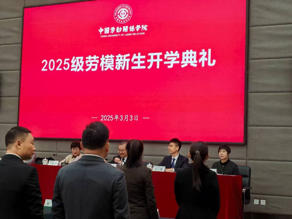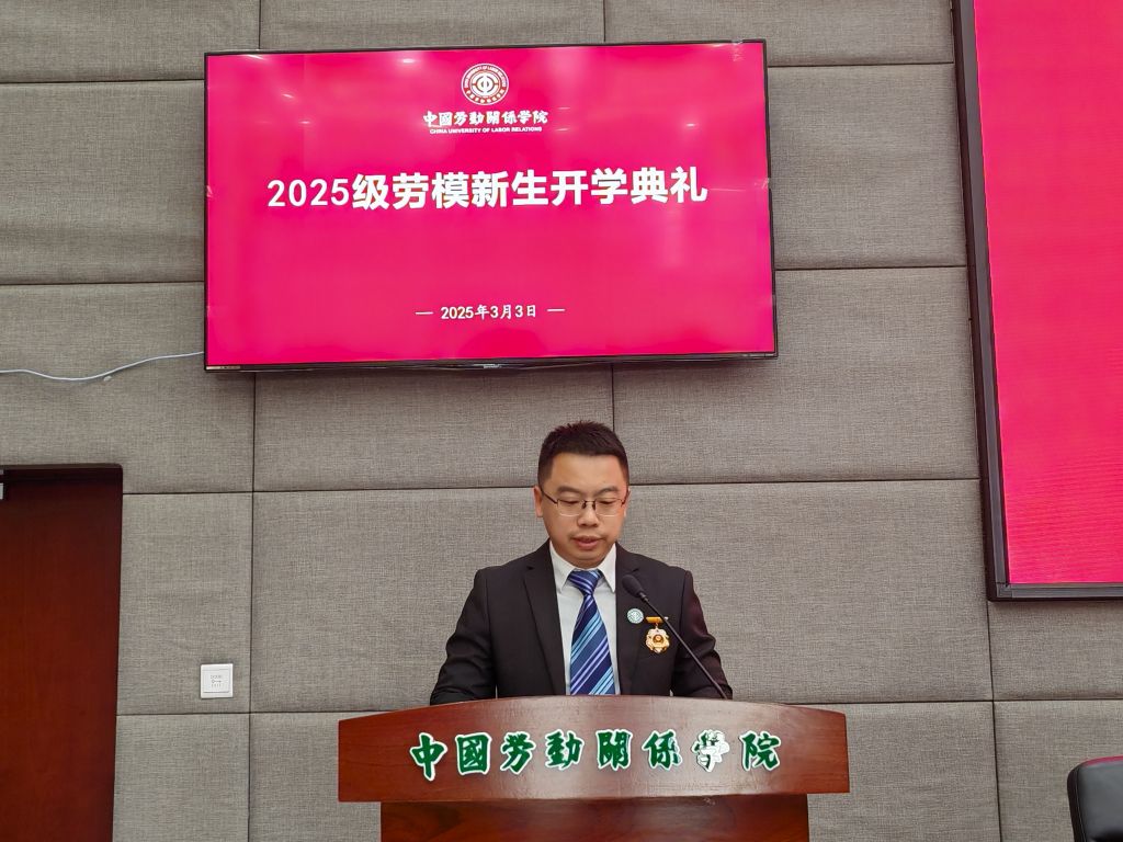 3月3日上午,广东省劳模工匠本科班(中劳班)2024级新生开学典礼在中国劳动关系学院致远楼909教室举行。党委委员、纪委书记黄一梅,广东工匠学院副院长凌红受学校党委委托出席开学典礼,中国劳动关系学院劳模新生、教师代表等近百人参加典礼。