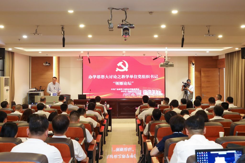 7月9日,广东南华工商职业学院办学思想大讨论之教学单位党组织书记“领雁论坛”在天河校区举行。论坛以“实干为要,创新为魂,党建引领高职核心竞争力提升,建设高水平工会特色高职院校”为主题,汇聚省总工会相关负责人、兄弟院校专家及校内各级党组织负责人,共话党建与高职教育深度融合的实践路径,为推动职业教育高质量发展凝聚“红色动能”。