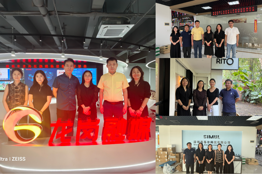 调研组一行先后走访调研龙岗区融媒体集团、深圳思慕尔科技有限公司、黑马出海企业服务(深圳)有限公司、深圳市朗图设计有限公司等四家优质企业。在深圳市龙岗区融媒体集团,调研组一行实地参观了融媒体指挥中心、直播间、全媒体演播厅等核心部门,深入了解融媒体发展新趋势,校企双方就人才培养、实习就业、产学研合作等方面进行了深入交流,达成多项意向合作共识;在深圳思慕尔科技有限公司,双方就聚焦"短视频与新媒体营销赋能品牌出海"主题开展专题研讨;在黑马出海企业服务(深圳)有限公司,双方围绕“订单班”人才培养模式展开深入研讨;在深圳市朗图设计有限公司,校企双方就如何发挥数创学院专业优势更好地服务清远农文旅产业进行了深入讨论。