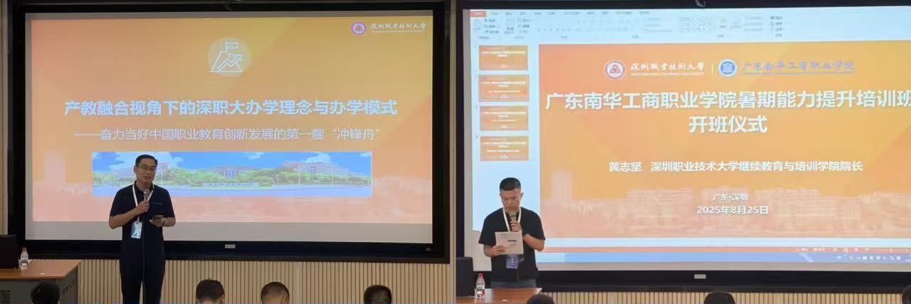 鹏城夏韵浓,研修正当时。8月24日至30日,学校2025年骨干教师能力提升培训班在深圳职业技术大学顺利举行。本次培训班是学校落实“双高”建设目标、深化产教融合的重要举措,旨在深入贯彻现代职业教育体系建设改革要求,全面提升教师队伍专业能力与办学治校水平。全体参训教师带着对标先进的求知渴望、推动学校内涵发展的责任担当,开启了为期一周的沉浸式学习研修之旅。