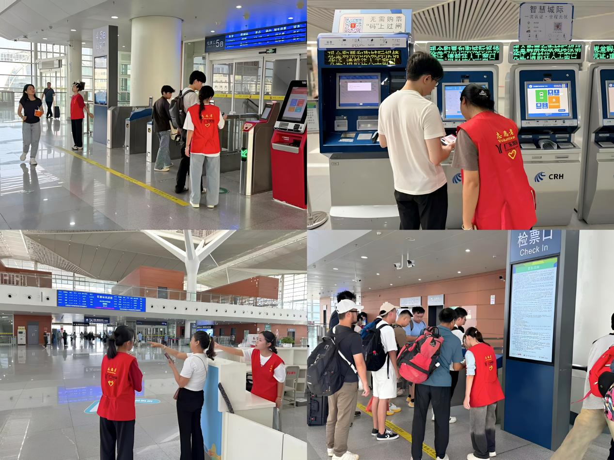 候车大厅里,我们化身“移动咨询台”,用任性服务缓解旅客疲惫。小小的身影蕴含大大的能量,让乘客赶车的疲惫在暖心的帮助下消散。在这段意义非凡的时光里,我们创造并见证了无数温暖人心的瞬间,从车站里耐心的引导到现场热情的服务,每一个南华人都用行动诠释着“奉献、友爱、互助、进步”的精神。