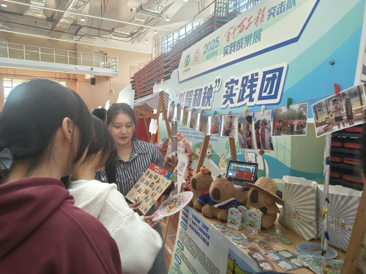 在成果展现场,我校突击队代表通过图文展示、实物陈列、视频播放等形式,生动讲述了他们深入清远乡村、助力产业升级与非遗文化发展的实践故事,同时还参与了活动各环节的交流研讨,展现了南华学子良好的精神风貌与专业素养,获得了与会专家和兄弟院校同行的关注与好评。