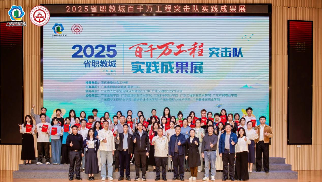 12月9日,为集中展示省职教城大学生投身“百千万工程”的实践成效,由清远市委社会工作部指导、广东省职教城(清远)事务中心主办的2025省职教城大学生“百千万工程”突击队实践成果展在广东交通职业技术学院隆重举行,我校6支突击队入选成果展。