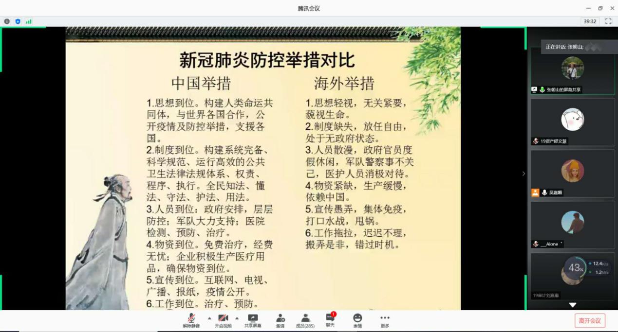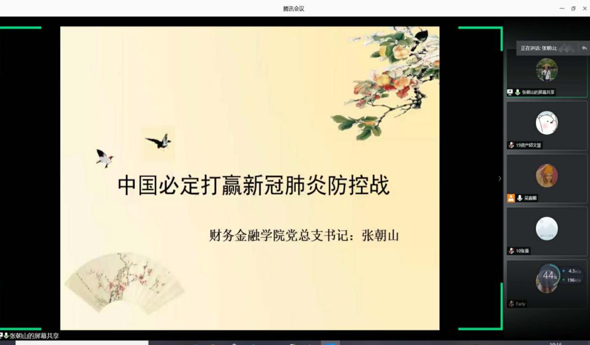 张朝山书记以“打赢疫情防控人民攻坚战”为主题,围绕疫情从四个方面展开课程。