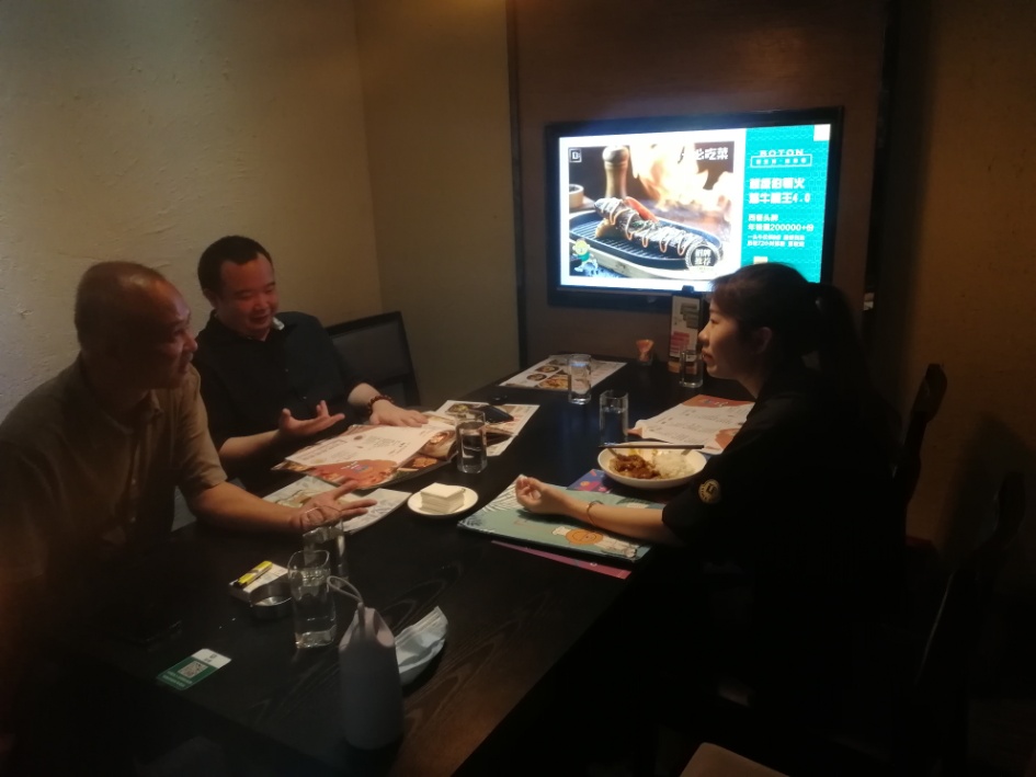 结束探望后,三位教师前往伯顿西餐厅艳阳天店(常平镇),与伯顿公司人力总监陈国凤洽谈,就前期现代学徒制工作做了总结和研讨,特别是新冠肺炎疫情对校企合作各项工作带来的影响,并对接下来的现代学徒制和校外实践教学基地工作做了初步规划。会谈后,教师们就企业推行的全面质量提升“源全系统”进行了现场实效观摩。“源全系统”将作为第二批现代学徒制试点的重点课程内容,为学徒提供“5S质量管理”学习。