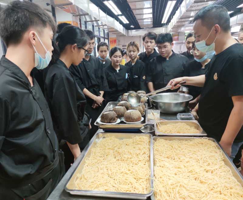 2020年8月3日,烹调工艺与营养专业负责人张树清、专任教师黄智洋、辅导员黄隽前往东莞市高技能公共实训中心(横沥镇),探望参加集训的2018级伯顿烹调学徒。我校教师向东莞市伯顿饮食服务有限公司人事经理黄丽梅了解了培训计划和内容安排,并提出了疫情背景下学校对实习计划的有关要求;同时向企业授课导师了解了学徒们的培训表现,征询工作意见。