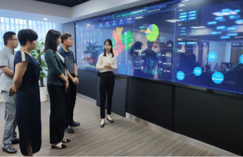 2020年8月14日上午,我校教务处副处长蔡宏标教授,应用法学院副院长杨咏婕、张静,法律事务专业和司法助理专业负责人赖勇军,办公室副主任曹天馨应上海百事通公共法律服务有限公司邀请,到该公司项目点之一广东省总工会12351职工法律服务热线智慧展播监控厅参观并洽谈项目合作。