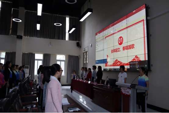 开班仪式由清城区第一幼儿园教导主任彭荔主持,仪式在庄严的国歌声中拉开序幕。