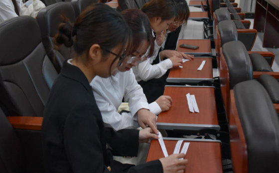 四月清禾雨乍晴,外院学子身着整洁的衬衫、西裤和西裙,搭配得当的皮鞋或高跟鞋,以专业、自信的形象步入课堂、穿梭校园,形成一道亮丽的风景线。课堂上,身着正装的学生们较之平日更为稳重大方,充分展示出对知识的尊重,展现出良好的精神风貌。校园里,成群结队的正装团队,为校园增添了职场的色彩,引导莘莘学子养成良好的职业着装习惯。