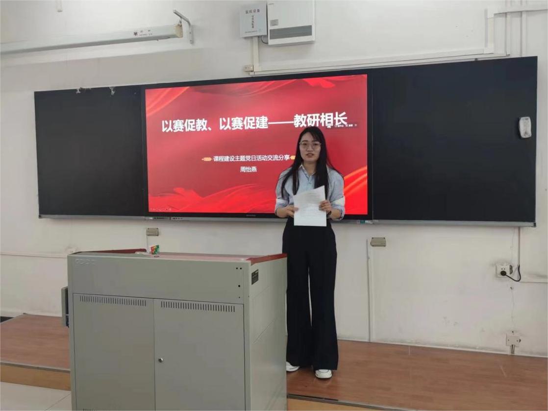 周怡燕以《以赛促教,以赛促建——教研相长》为题,分享了她在课程建设方面的心得体会。她认为深度备课和精炼教学内容是提升教学质量的关键,教师个人要不断学习和掌握先进的教学方法,注重从通过参加各类教学比赛和课程建设收获丰富的教学经验和成果,同时也要注重团队合作的建设。