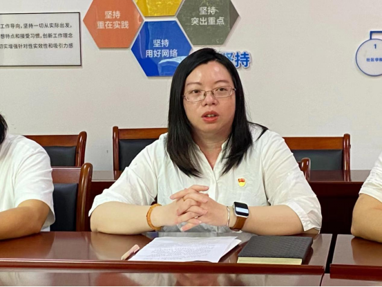 敏捷社区党支部书记刘卫怡领学《条例》第九章“对违反群众纪律行为的处分”,她提到作为基层党员干部必须要时刻以人民发展为中心,把人民利益放在首位,严格遵守党的纪律,做到廉洁自律、公私分明。