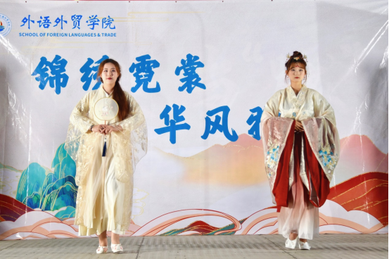 5月27日,外语外贸学院开展“锦绣霓裳,华风雅韵”华服主题系列活动,通过“形象美”之华服走秀活动与“知识美”之华服竞猜问答活动,向同学们展现中华传统服饰的韵味与魅力,弘扬传统文化精神,让同学们更加坚定文化自信。