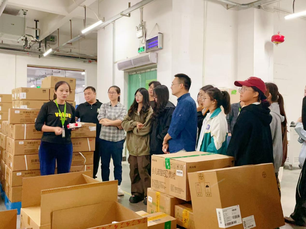 五楼和六楼的整装仓库是学生们参观的最后一站。在这里,学生们亲眼见证了药品从入库到出库的整个存储过程。仓库内整齐划一的货架、自动化的存取系统以及智能温控设备,都给学生们留下了深刻的印象。学生们通过实际观察,对药品的储存条件和管理要求有了更加直观地认识。