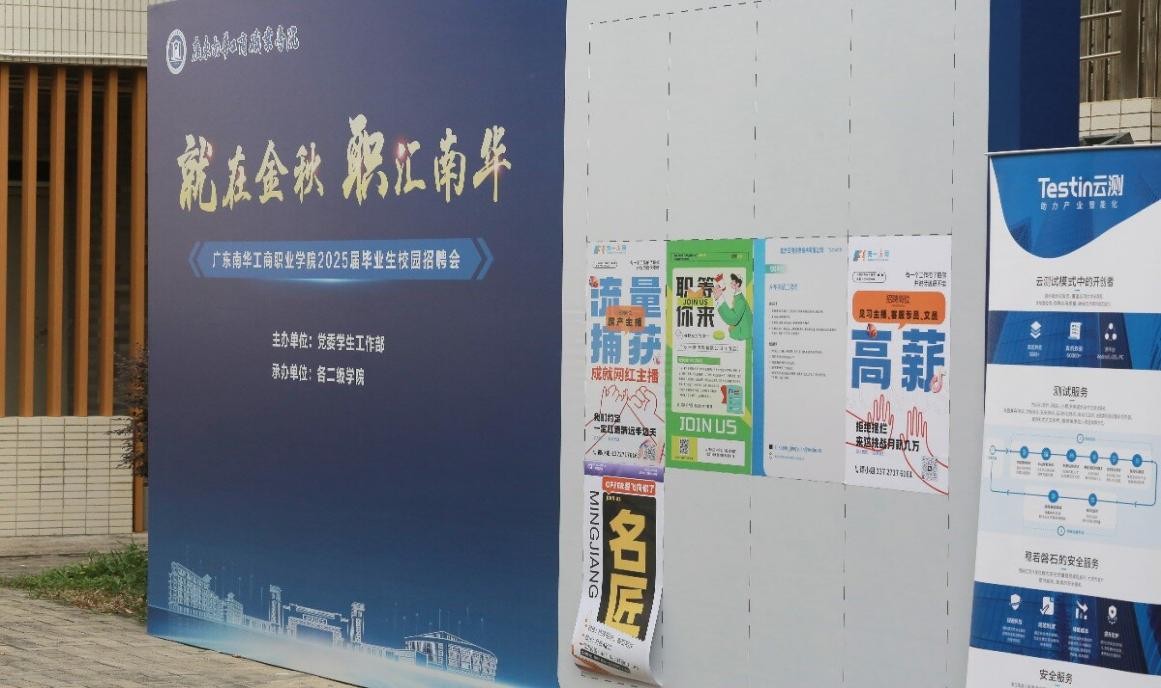 11月21日,广东南华工商职业学院2025届毕业生校园招聘会(信息工程与商务管理学院、数字创意设计学院专场)在清远校区学生社区顺利举行。本场招聘会由学校党委学生工作部主办,信息工程与商务管理学院(以下简称“信商学院”)、数字创意设计学院(以下简称“数创学院”)承办。