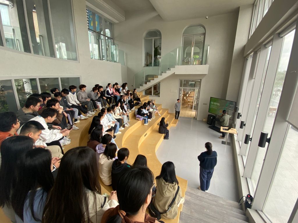 在和秧集文化交流空间内,和秧合社的张经理为师生们详细介绍了当地的农旅融合项目以及地块启动区的专项规划和策划。和秧建筑以其独特的设计理念和地标性的形象,成为了连接稻田与山体、提供空间庇护的精神建筑,同时也是一个能够容纳多元化活动的自由场所。