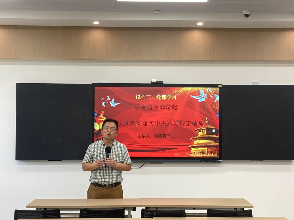 为扎实推进深入贯彻中央八项规定精神学习教育,进一步锤炼党员作风,提升党性修养,6月11日,博雅教育学院党总支书记刘喜民以“从身边点滴做起——深入贯彻中央八项规定精神”为题讲授专题党课。学院全体党员参加学习。