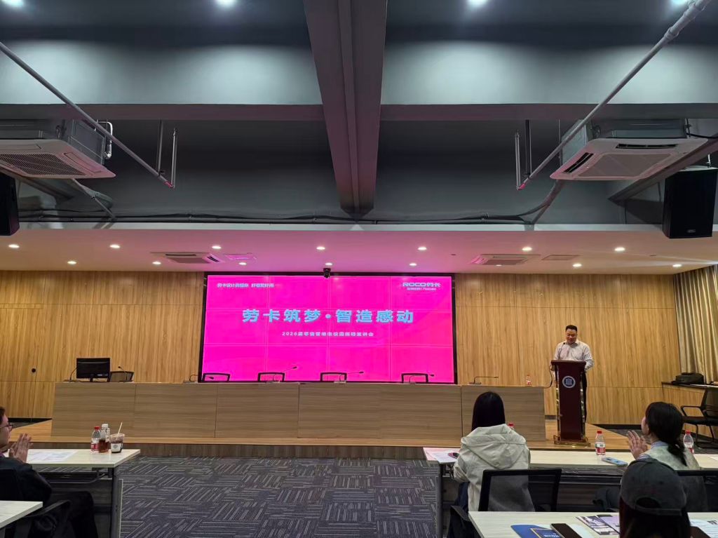 11月5日,建筑装饰学院联合定制家居行业领军品牌劳卡在图书馆一楼报告厅成功举办以“筑梦 智造 感动”为主题的2026届管培生校园招聘宣讲会。现场气氛热烈,参与人数突破200人,座无虚席。