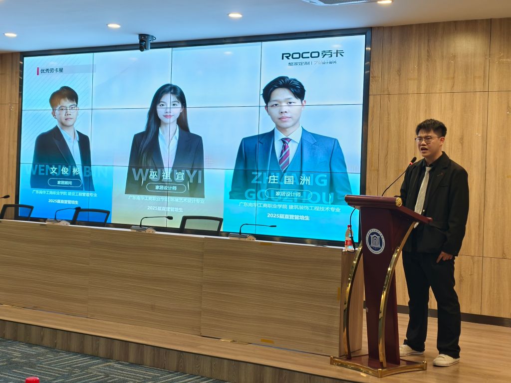 宣讲会上,劳卡招聘经理陈高龙详细介绍了公司发展历程、人才培育理念及2026届管培生招聘计划。招聘岗位涵盖家居顾问、家居设计师等多个方向,精准对接我院环境艺术设计、风景园林、建筑装饰工程技术三大专业,实现专业与产业深度融合。