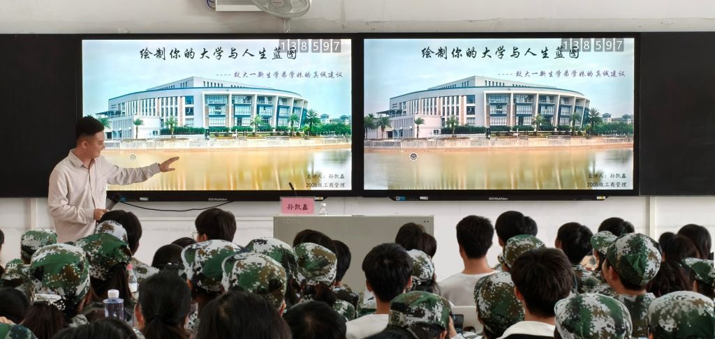 第二场讲座由高美荷老师主持,2005级工商管理专业毕业生孙凯鑫以"绘制你的大学与人生蓝图"为题,围绕职业导向、核心竞争力、职业规划、人际关系经营四大核心展开分享。他结合自身从大学代理到投资创业的完整经历,用真实案例为学子拆解成长秘籍,强调兴趣是发展的核心驱动力,鼓励学子把握机遇主动提升自我。互动环节中,孙凯鑫学长耐心解答了新生关于人才选择、品牌打造、实习渠道等疑问,为新生提供了实用的规划思路。