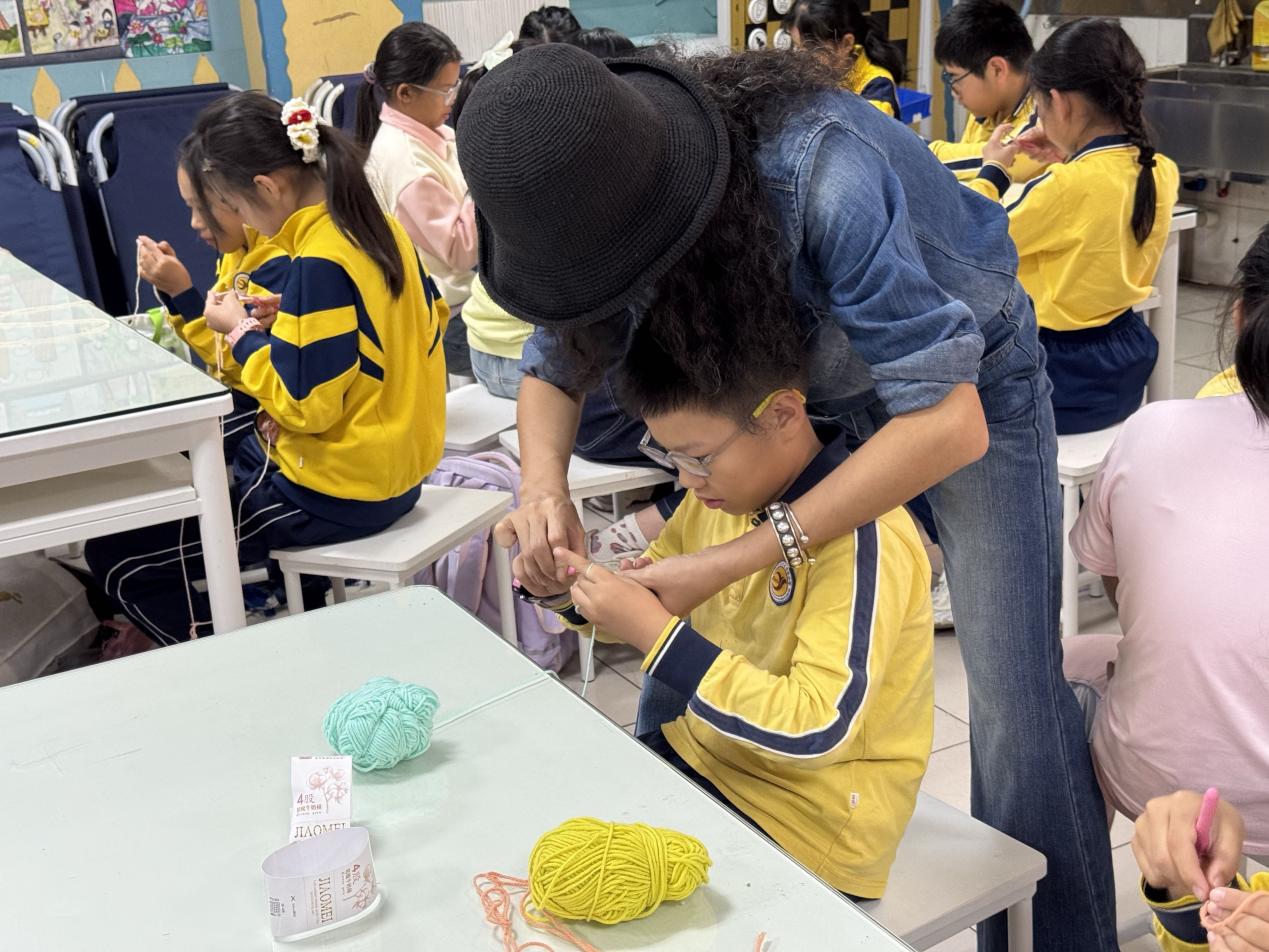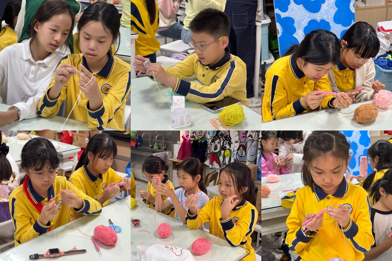 11月14日,学校博雅教育学院师生走进广州市天河区侨乐小学,进行劳动教育送教上门活动。本次活动依托广东省中小学劳动教育基地资源,在教室开展“指尖上的岭南——钩针编织非遗体验课”,让孩子们在针与线的穿梭中,触摸传统手艺的温度。