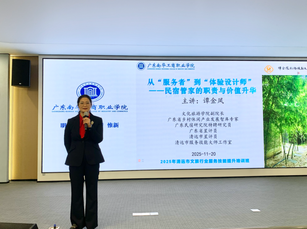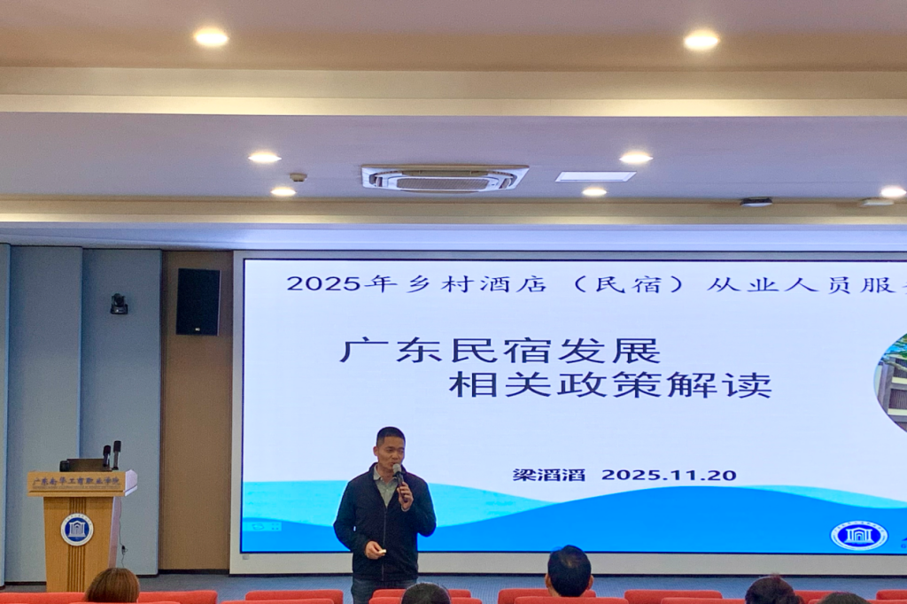为深化产教融合,助力乡村振兴与文旅产业高质量发展,学校与清远市文化和广电旅游体育局携手合作,于2025年11月20-21日在清远校区举办乡村酒店(民宿)从业人员服务技能提升培训班。本次培训精准对接行业发展需求,累计服务学员约440人次,为清远市民宿行业注入专业发展新动能。