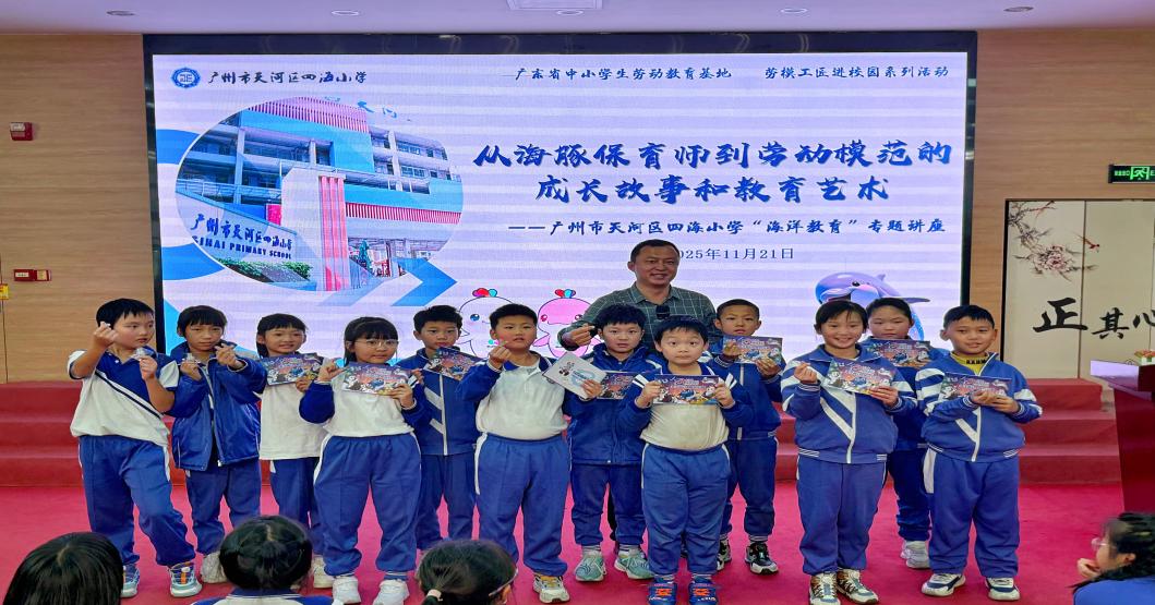 为大力弘扬劳模精神、劳动精神、工匠精神,11月21日,全国“劳模工匠进校园”示范点暨广东省中小学生劳动教育基地——广东南华工商职业学院,在广州市天河区四海小学隆重举办"从海豚保育师到劳动模范的成长故事和教育艺术"专题讲座。本次活动特邀广州市五一劳动奖章获得者王剑,以亲身实践诠释"三个精神"的深刻内涵,为师生们带来一场精彩纷呈的德育+劳育的融合课程。