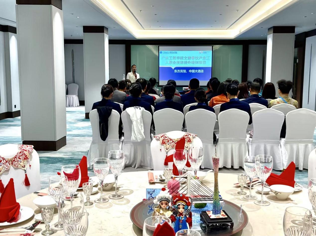 为积极响应国家职业技能提升行动号召,深化校企协同育人,助力文旅产业高质量发展,广东工匠学院产业工人职业素养提升项目文旅餐饮产业工人专项提升培训班在中国大酒店与东方宾馆成功举办。11月27日至28日,文化旅游学院教师团队为两家五星级酒店的客房部、餐饮部等130余名员工开展定制化职业技能提升培训。