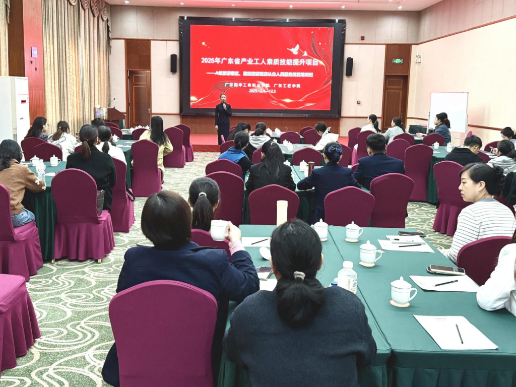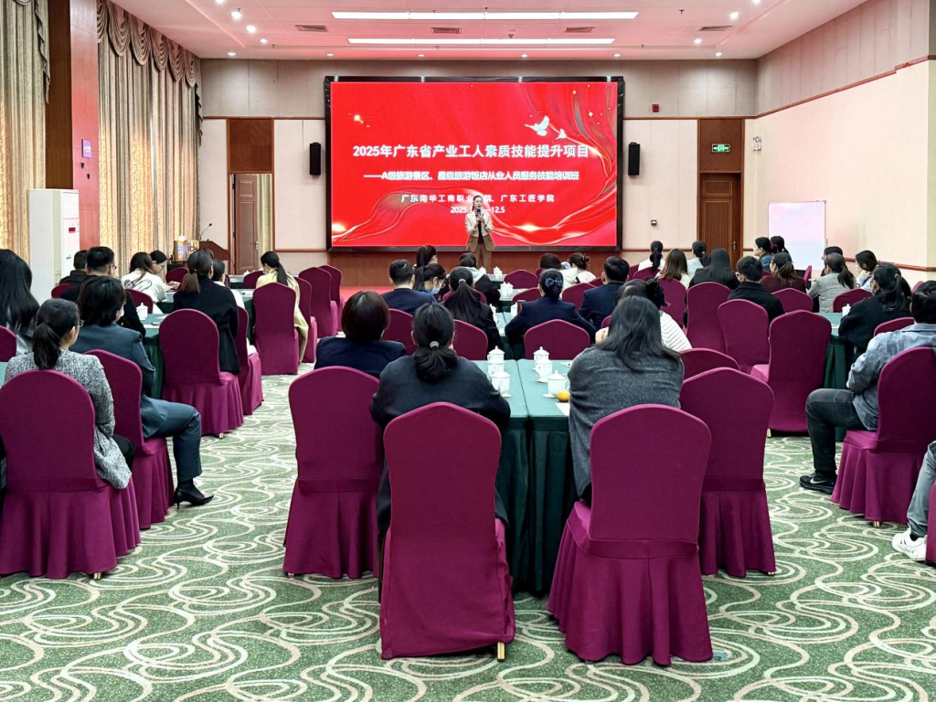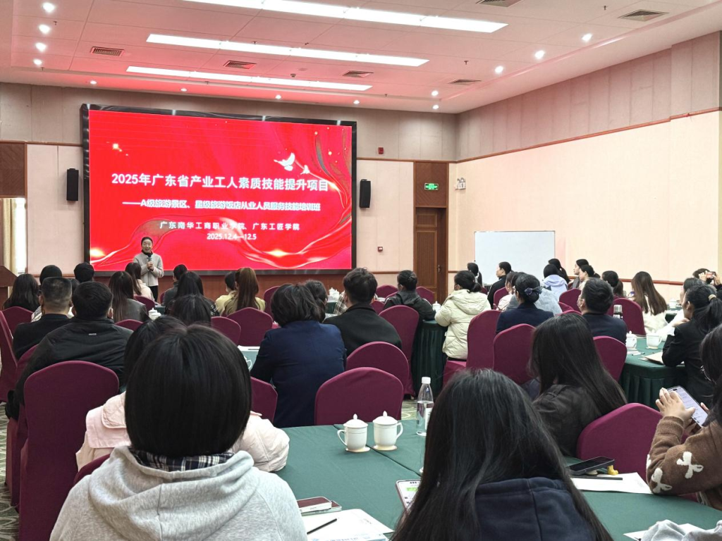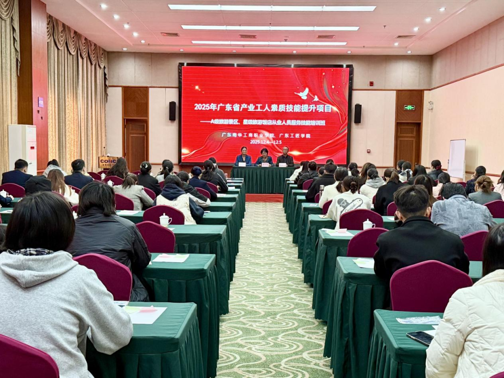 为强化产教协同,驱动文旅产业提质升级,广东南华工商职业学院组织教师团队于12月4日至5日前往英德海螺国际大酒店,开展为期两天的文旅产业工人职业技能专项培训。本次培训面向清远地区A级旅游景区与星级旅游饭店等行业一线员工,累计培训超过280人次。教师团队以实战为导向,融入行业发展趋势,通过系统课程助力从业人员提升服务技能与职业修养,体现了高职院校对接产业、服务社会的使命担当。