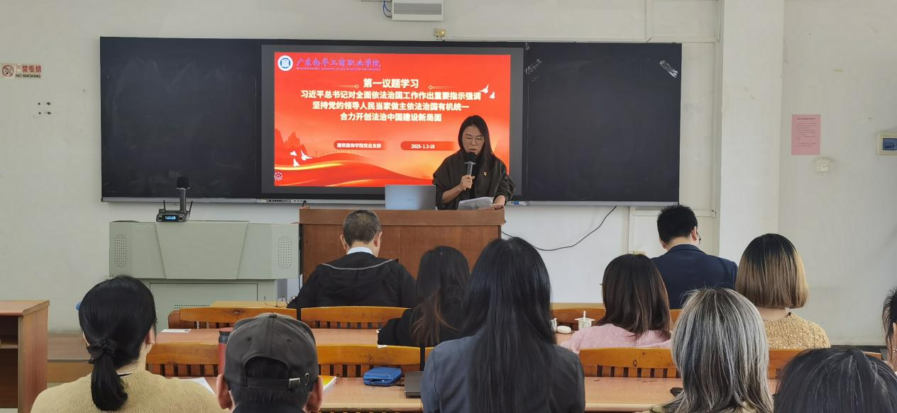 大会首先进行了第一议题学习,内容为《学习习近平总书记对全面依法治国工作作出的重要指示和中央全面依法治国工作会议精神》。学院党总支书记张朝山在心得体会分享环节,强调了依法治国工作对我们依法治校、依法治院的要求,希望全体教职工进一步强化法治意识,依法依规依流程办事,将法治精神要求落实到各个方面各个环节。通过学习,全体党员进一步加深了对全面依法治国重要性的认识,增强了法治意识和法治观念。