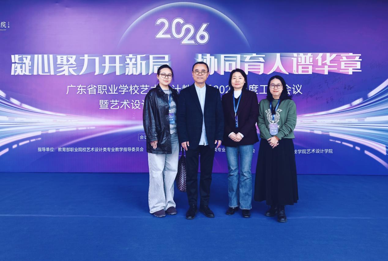 2026年1月10-11日,广东省职业学校艺术设计教指委2026年度工作会议暨艺术设计人才专本协同培养研讨会在广东科技学院松山湖校区成功举办。本次会议以“凝心聚力开新局,协同育人谱华章” 为主题,由教育部职业院校艺术设计类专业教学指导委员会指导、广东省职业学校艺术设计教学指导委员会主办,聚焦艺术设计人才贯通培养核心议题,汇聚全省近60所院校及行业企业的100 余名专家学者共话发展。我校数字创意学院负责人徐丹带领专业老师纪姗姗、陈晓华应邀参会,沉浸式汲取前沿教育理念与实践经验。