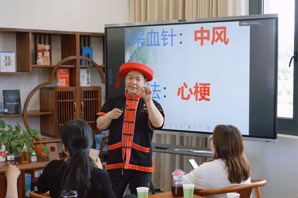 活动现场,传承人团队用通俗易懂的语言,系统讲解瑶医药养生理念、日常保健知识及实用急救技能,针对教职工长期伏案引发的颈肩劳损等常见问题,传授个性化调理方法,分享简便易学的办公室养生技巧。在一对一体验环节,团队为教职工提供体质辨识、经络调理、穴位按压、特色外治等服务,耐心解答健康疑问,细致操作帮助大家舒缓疲劳、改善不适,引导教职工树立科学健康观念、养成文明生活方式。