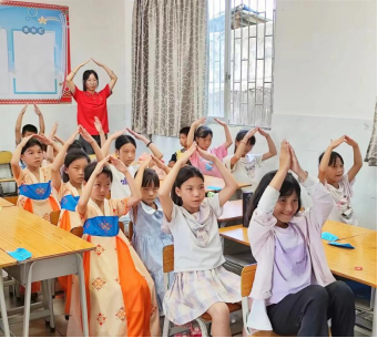 支教组的小老师们在课程设计上不仅要注意到要提高小朋友们的文化领域的能力,而且还要加强小朋友们品德品行的教育,教育我们每个人都要有一颗知恩感恩的心,小老师带们领小朋友通过手势舞《感恩的心》将小朋友们心中想要对她人表达的感激之情表达出来,整齐划一的动作真挚的情感每一帧都在诠释着她们的情感。