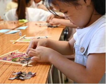 美好的瞬间总是最难忘的,想把美好的东西永远的留在那个时刻,支教组团队的小老师在艺术手工课上带领小朋友们一起专心致志地制作创意相框,把心中对与美的想法通过相框和花朵创意组合体现出来,创作出属于自己最独一无二的美。