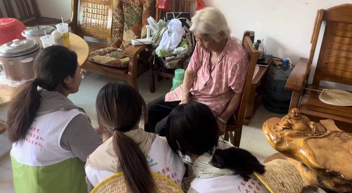 在绘制墙绘期间,有位阿婆经常迈着蹒跚的步伐来看同学们画画,起初同学们都以为阿婆是要捡颜料瓶,经过交谈后发现阿婆竟是位独居老人。“不要那么辛苦啦”这是阿婆经常挂在嘴边的话,让团队成员们深受感动。在受到阿婆吃午饭邀请后,大家决定带着慰问物资前往阿婆家为她做顿丰盛的午餐,让她久违感受到家庭的温馨。“节”出青年队以“爱心午餐”为牵引,听阿婆聊家常,将“尊老爱幼”传统美德贯穿始终,让温馨与欢乐排解老人的孤独。