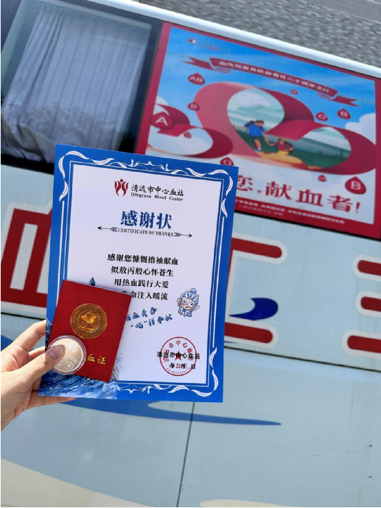 走出献血屋,微风轻拂脸颊,整个人都仿佛被赋予了新的活力。献血证上的鲜红印章,不仅是一份荣誉,更是一份责任的见证。这次经历,让我懂得奉献本身就是一种幸福,也让我坚定了以后定期献血的决心,希望用自己的热血,为需要帮助的人送去温暖与希望 。