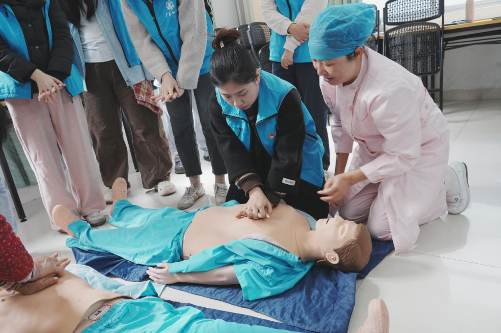 本次培训聚焦社区服务骨干的应急救护能力和实用技能,旨在将专业的卫生保健知识转化为一线社工服务队伍应对突发状况的真本领,培训特邀请了广东黄埔卫生职业技术学校高级讲师王健授课,培训中王健老师们将复杂的急救知识化繁为简,从心搏骤停的识别到心肺复苏的黄金四分钟,从AED的操作到气道异物的海姆利希急救法,再结合生动的生命救援故事,为在场的社区服务骨干们,系统地构筑起一道坚实而清晰的生命安全知识防线。