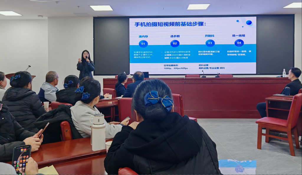 数字创意学院周彦佐、杨柳分别以“手机短视频拍摄与剪辑”“公众号图文编辑与运营”为主题,教授学员数字化技能,帮助从业人员掌握新媒体工具,提升其在文旅宣传与品牌传播方面的能力。