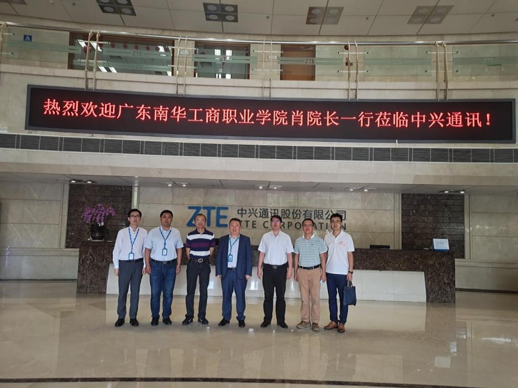 为进一步提高人才培养质量,深化校企产教融合,推进中兴通讯数字化产业学院建设,了解毕业生就业现状。应中兴通讯股份有限公司(以下简称“中兴通讯”)的邀请,信息工程与商务管理学院肖伟常务副院长、郑海清常务副书记、信息技术系廖大强主任、辅导员崔宁老师一行4人,于2021年5月13日到中兴通讯参观考察。