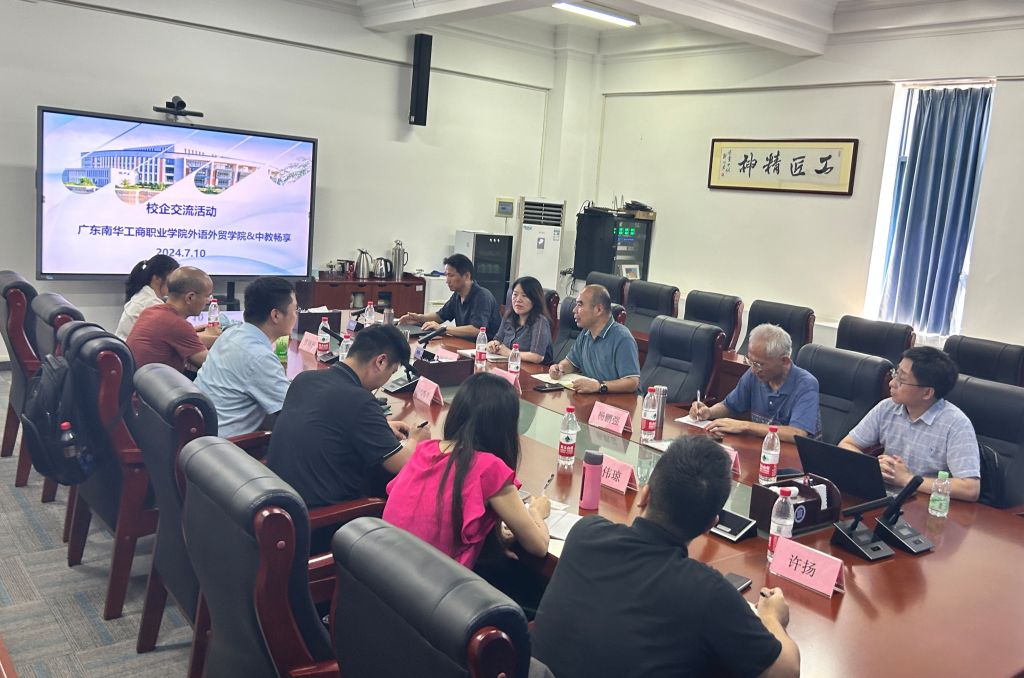 7月10日,广东南华工商职业学院外语外贸学院(以下简称“外院”)与中教畅享科技有限公司(以下简称“中教畅享”)开展座谈交流,双方就教学项目合作、教材开发、教育技能培训、人才培养模式建设、拓宽学生就业渠道等方面进行了深入交流。