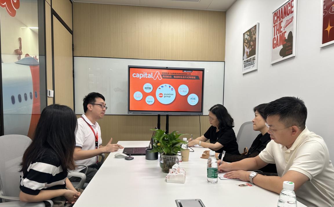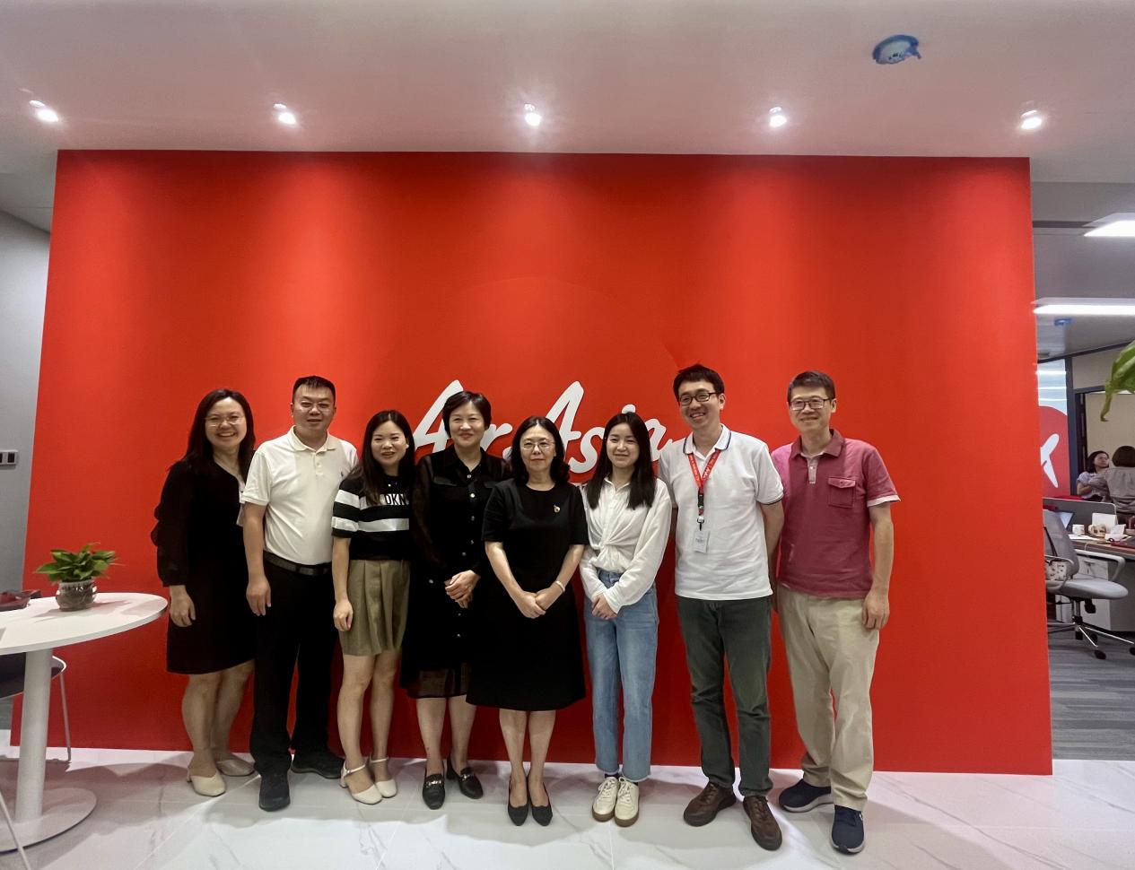 由于我校外语专业学生在亚航的出色表现,用人单位良好的用人体验促成了此次走访。会晤开始首先由伍杰总监介绍亚航商务服务有限公司的概况。成立于1993年的亚洲航空公司一直致力于将低成本飞行带到新高度,使“现在人人都能飞”的信念成为现实,并连续14年获得“世界最佳低成本航空”的荣誉。2022年集团更名为“Capital A”(资本A)后,大展拳脚,拓展航空领域以外的业务,辐射物流、电子商务、金融服务和创业公司孵化器等领域。继而招牌经理周瑜女士介绍道,疫情后,航空行业的逐步复苏,公司急需招聘英语口语流利,认可服务行业,踏实耐劳的英语人才,亚航已为其配套了完善的职业培训课程与畅通的职业晋升渠道。