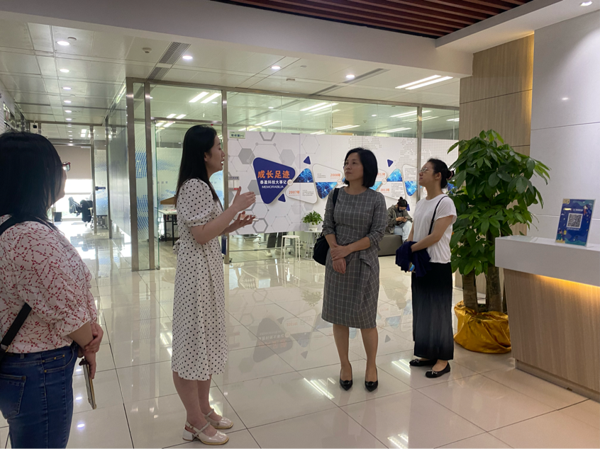 2023 年 4 月 17 日上午,财务金融学院金融投资系系主任孔令美、金融科技应用专业负责人曾瑜、证券实务专业负责人黄丽莉与教师王倩前往广东泰盈科技有限公司开展“访企拓岗促就业”专项活动。广东泰盈科技有限公司校企部负责人张玉霞经理热情招待了我方教师。