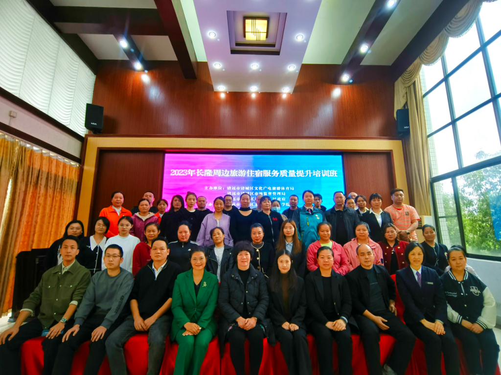11月30日下午,由清远市清城区文化广电旅游体育局、清远市清城区市场监督管理局、清远市清城区龙塘镇人民政府主办,清城区旅游协会、清城区文化旅游产业学院承办,清远市旅游协会、清远市新银盏温泉度假村协办的2023年清城区长隆周边旅游住宿行业质量提升培训班在新银盏温泉度假村成功举办。来自清城区龙塘镇长隆周边旅游住宿行业从业人员共40多人参加了此次培训。