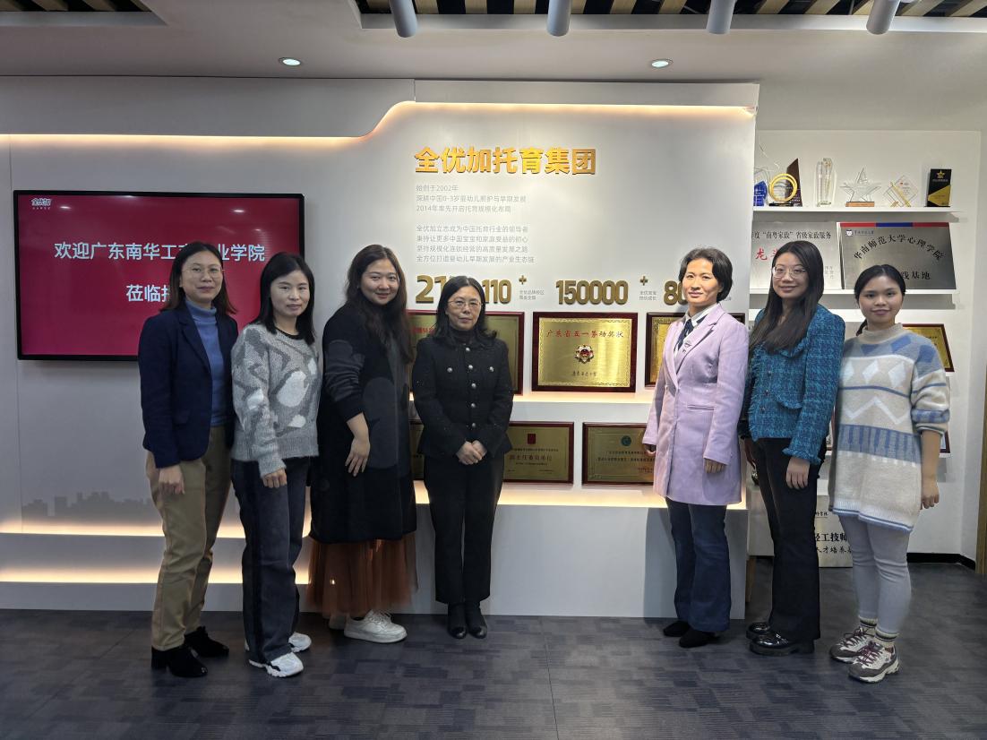 近日,副校长唐晓林率队到广东全优加家庭服务科技有限公司(以下简称全优加)调研,进一步深化交流合作。学前教育学院副院长赵玲霞、全优加副总裁程映雪参加调研活动。