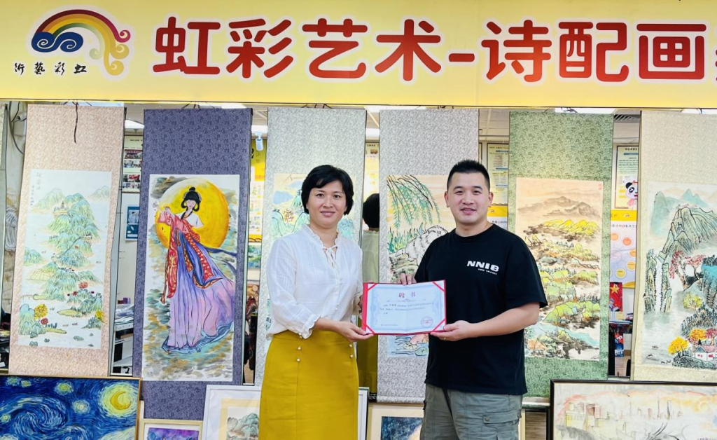 在前期洽谈过程中,经了解许德贤作为企业导师在国家级教学能力大赛、国家级创新创业大赛、专创融合队伍孵化等方面方面取得成果,与其多次沟通,申请将其聘为学校创新创业导师。座谈会开始,赵玲霞副院长许德贤颁发广东南华工商职业学院创新创业导师聘书。虹彩艺术创始人许德贤带领学院嘉宾参观并介绍了企业基本情况,分享了虹彩艺术成立以来获得的成绩和教学模式的创新之处。