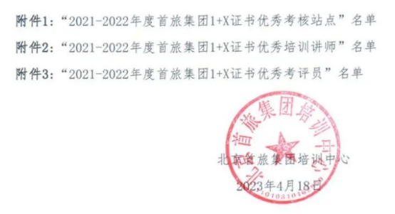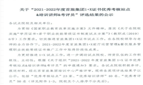 我校喜获2021-2022年度首旅集团1+X证书优秀考核站点&培训讲师&考评员称号