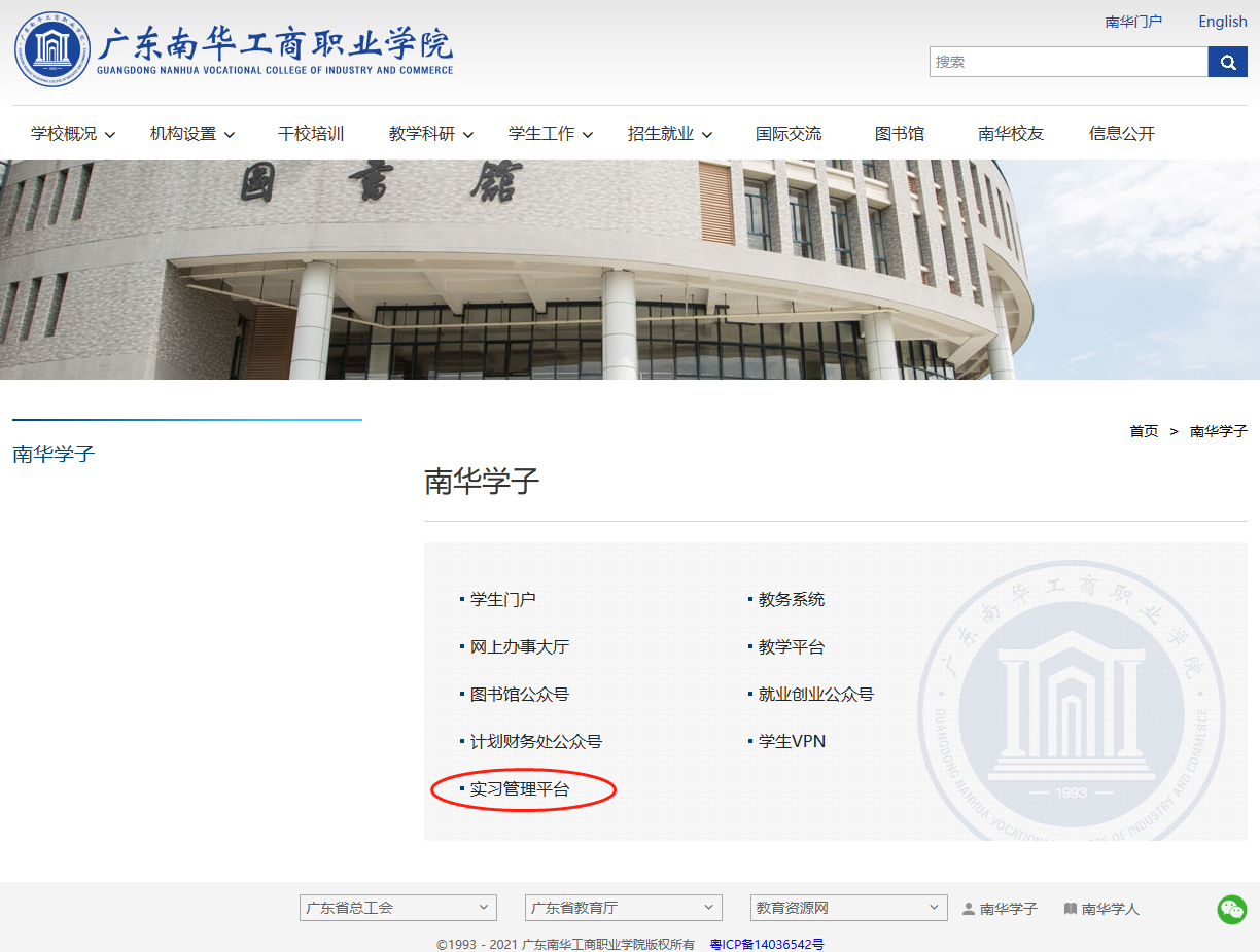 登录路径:“学校官网”➡“南华学人”(“南华学子”)➡“实习管理平台”,账号为学号/工号,密码为统一认证密码。
