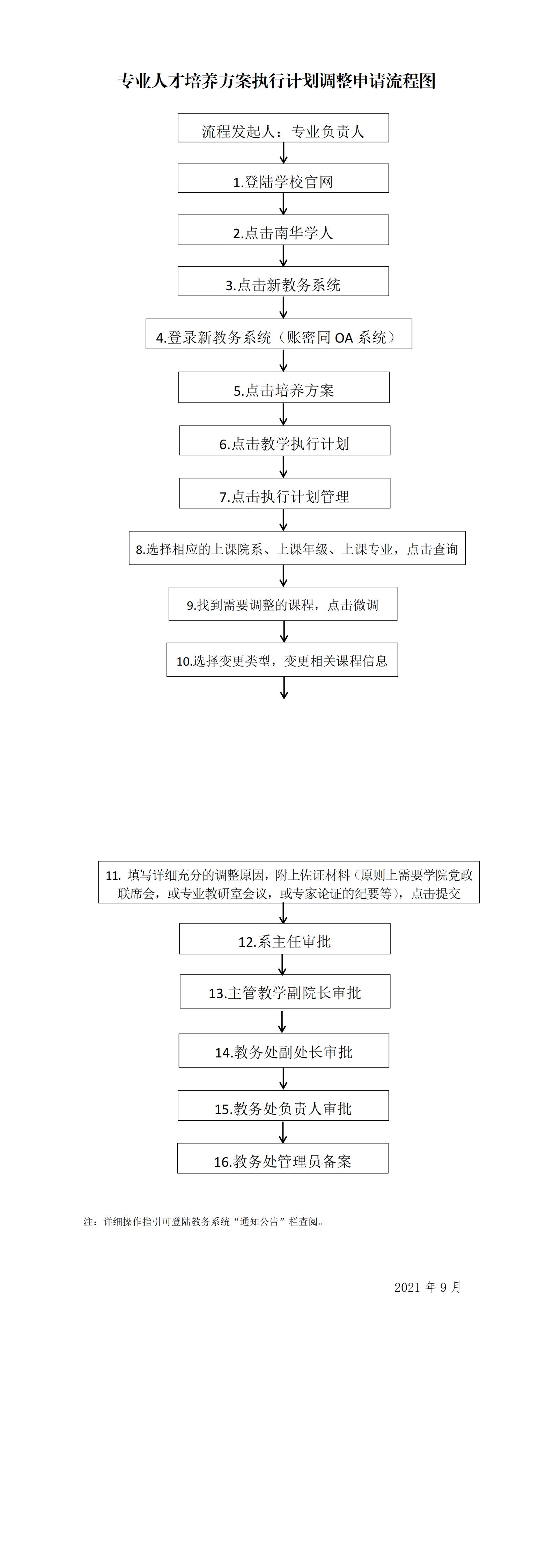 专业人才培养方案执行计划调整申请流程图