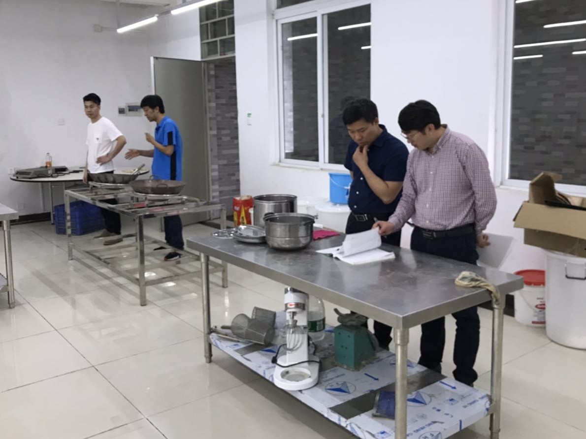 检查发现,烹调基本功练习室等部分实训室出现墙面渗水、天花板墙皮脱落、窗户锁扣无法上锁仍需相关部门配合进行处理。除此之外部分实训室卫生情况需得到加强,实训材料在实训结束后需进行集中处理。