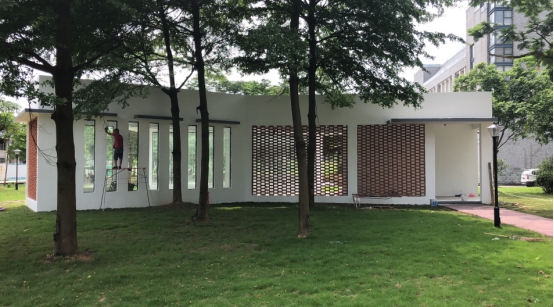 景观实训中心为2018年立项校级重点项目,通过设计招标与施工招标,经过上半年的建设,景观实训中心已经初步落成。